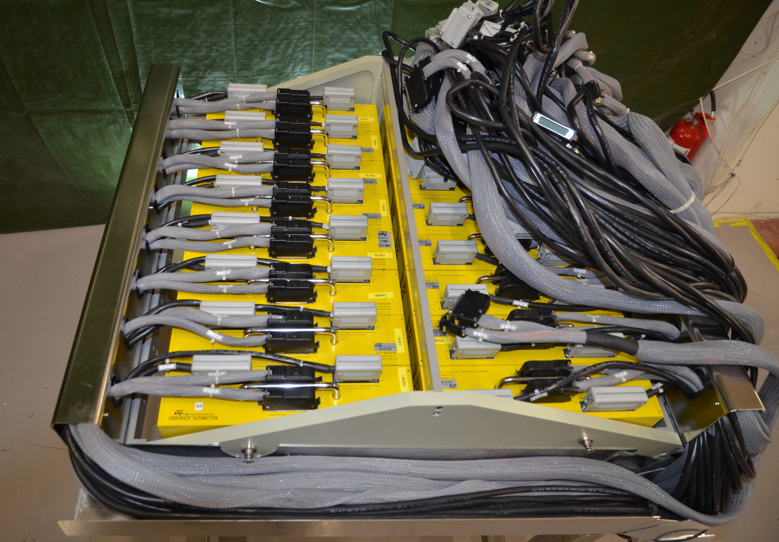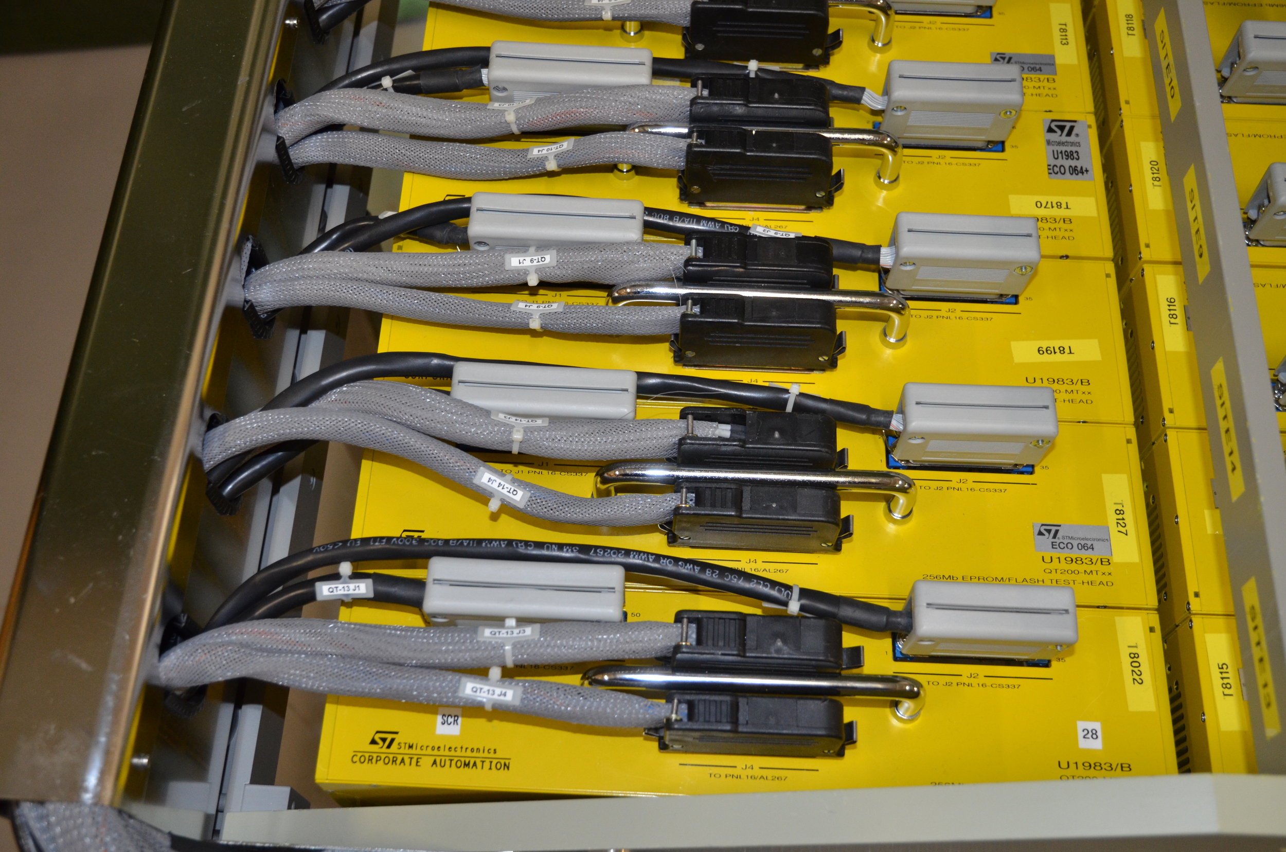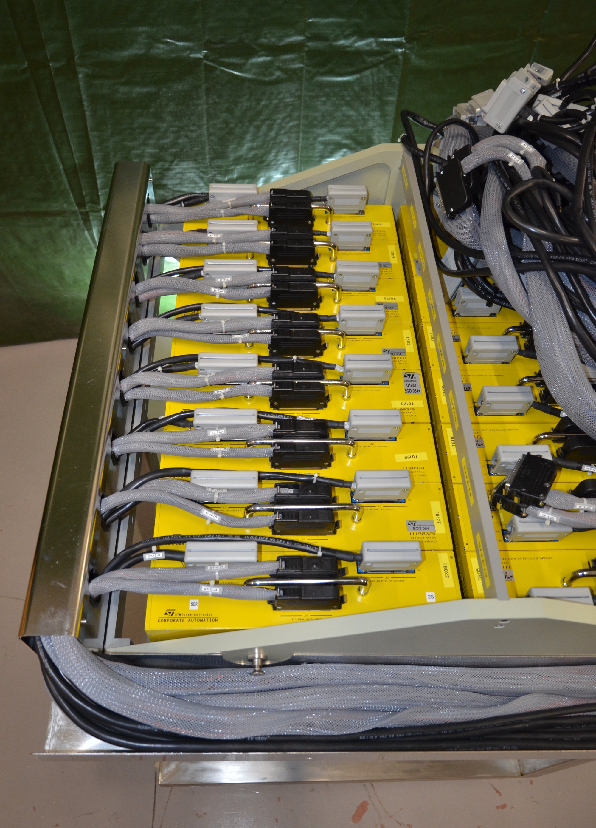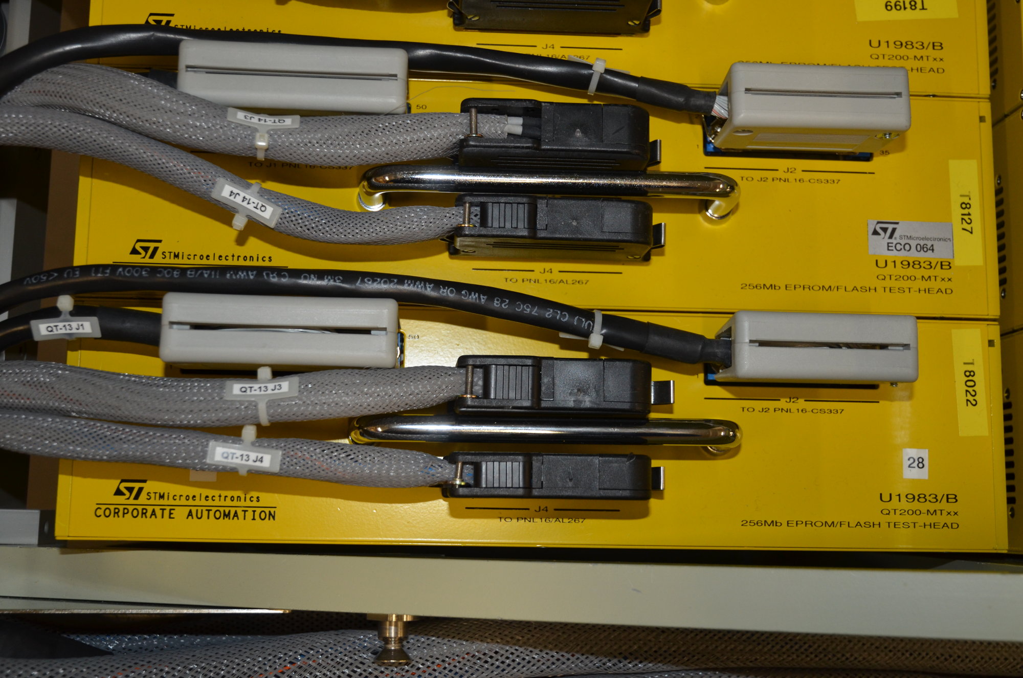 | Comments: | A complete and fully functional ST Automation manufactured Flash Memory Testing System, consisting of the following parts:- 1. Test head , crate size 187 cm x 137 cm x 147 cm (h) 2. Boards from inside the test head, crate size 125 cm x 90 cm x 90 cm 3. Systrama Manipulator , crate size 187 x 167 x 195 cm Physical size of manipulator: 145 cm x 135 cm x 160 cm (h). 4. Tester Main Body 107 cm x 87 cm x 125 cm 5. Grill and separaters 177 cm x 157 cm x 215 cm, 2,500 kg -The system is complete and includes all the system manuals, software etc., necessary for operation, and is located at our warehouse in Avezzano (AQ) 67051 Italy. The Tester includes qty 16 of ST Micro U1983B QT200Mtxx 256 Mb Eprom Flash Test Head modules. -See attached photos for details. |