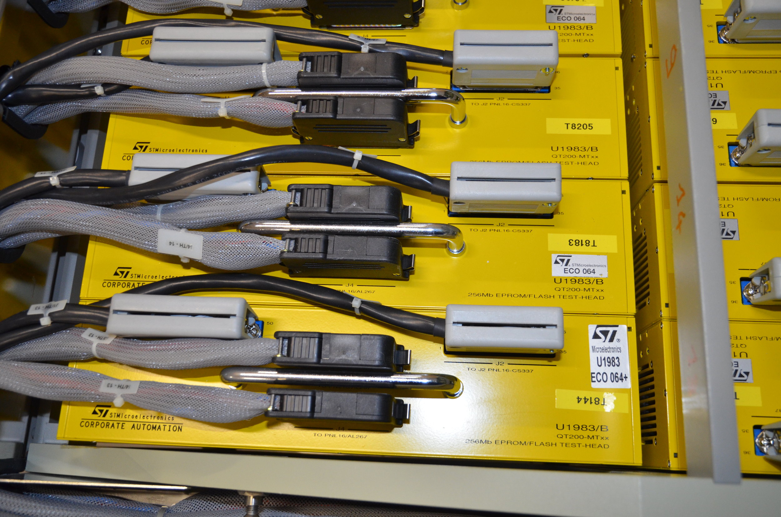 | Comments: | A complete and fully functional ST Automation manufactured Flash Memory Testing System, consisting of the following parts:- 1. Test head , crate size 187 cm x 137 cm x 147 cm (h) 2. Boards from inside the test head, crate size 125 cm x 90 cm x 90 cm 3. Systrama Manipulator , crate size 187 x 167 x 195 cm Physical size of manipulator: 145 cm x 135 cm x 160 cm (h). 4. Tester Main Body 107 cm x 87 cm x 125 cm 5. Grill and separaters 177 cm x 157 cm x 215 cm, 2,500 kg -The system is complete and includes all the system manuals, software etc., necessary for operation, and is located at our warehouse in Avezzano (AQ) 67051 Italy. The Tester includes qty 16 of ST Micro U1983B QT200Mtxx 256 Mb Eprom Flash Test Head modules. -See attached photos for details. -This system was only installed, but never actually used., so it is in "like New" condition. |