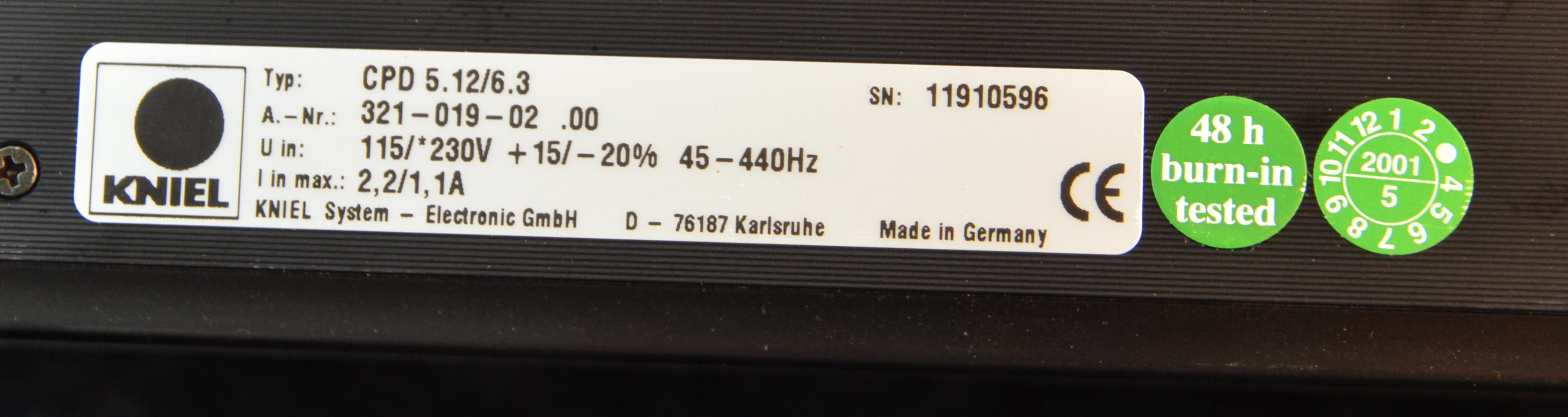 SDI fabsurplus.com is pleased to announce the availability of the following listed used KNIEL System CPD 5.12/6.3 Power Supply, 321-019-02.00.