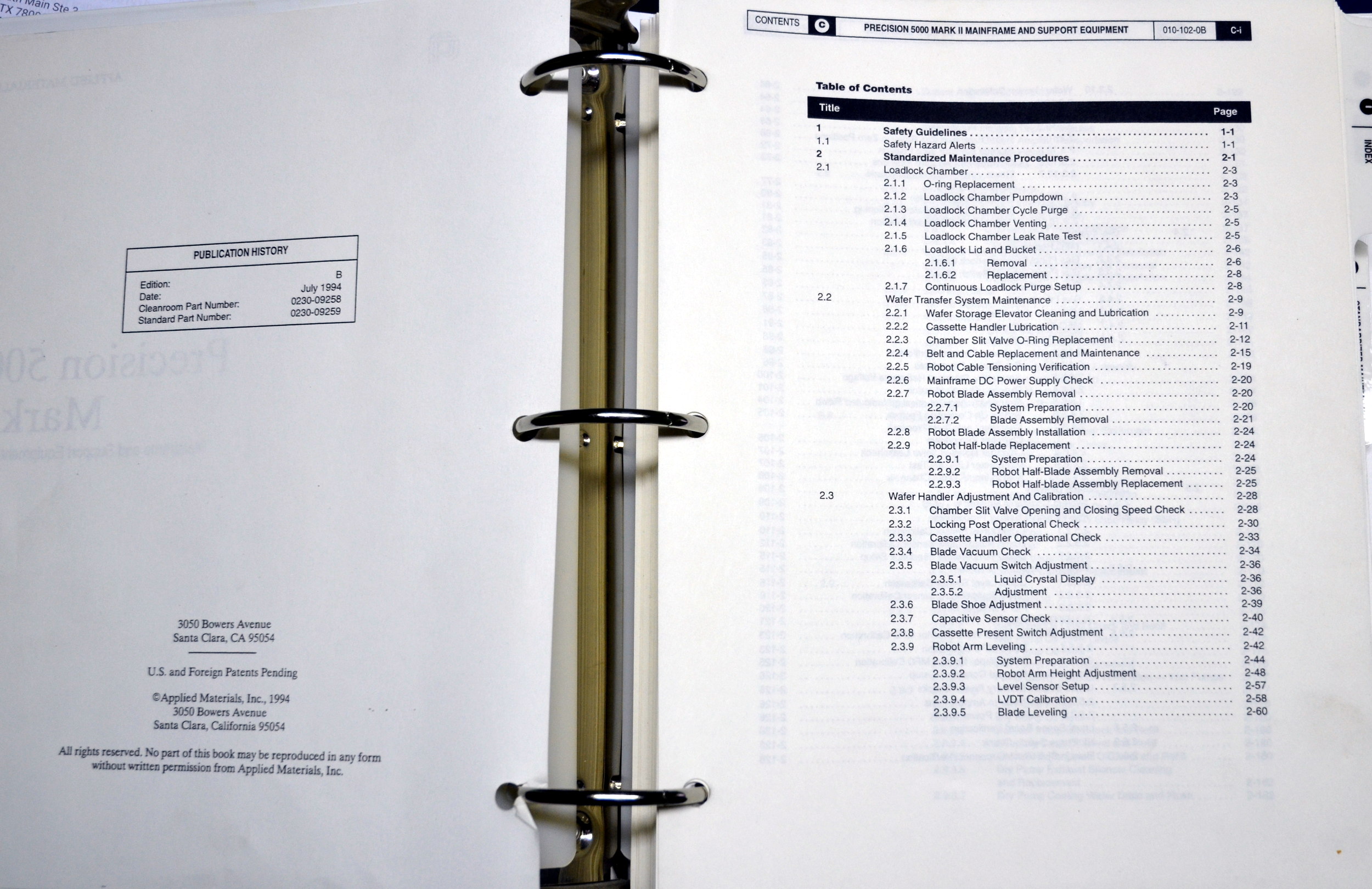SDI fabsurplus.com is pleased to announce the availability of the following listed used Applied Materials ® 0230-09258B P5000 Mk II Mainframe and Support Equipment Manual.