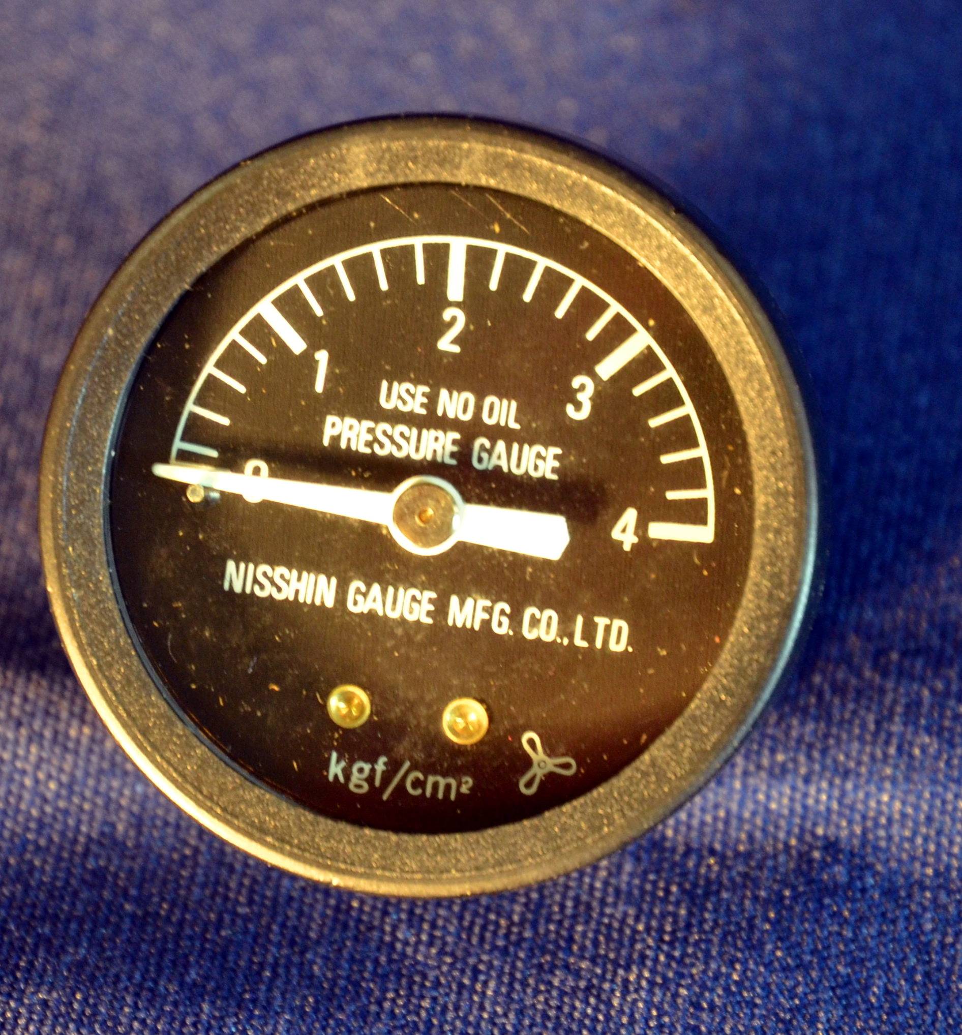 This Nisshin 4 kgf/cm2 pressure gauge is available for immediate sale.