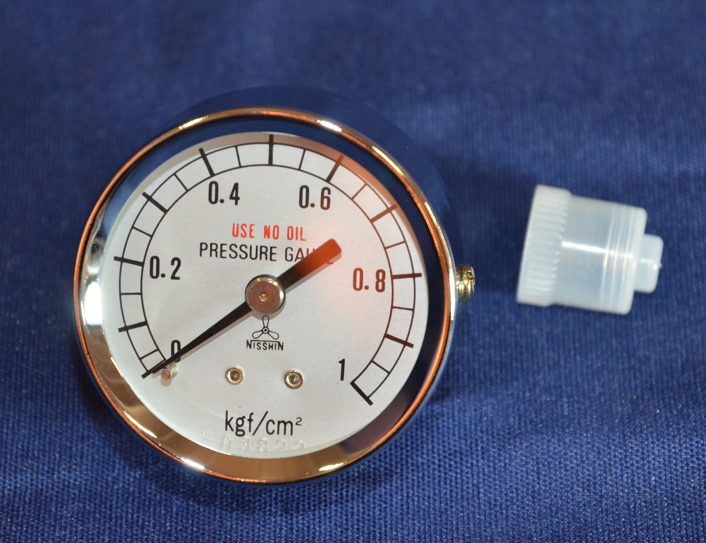 This Nisshin 0-1 kgf/cm2 pressure gauge is available for immediate sale.