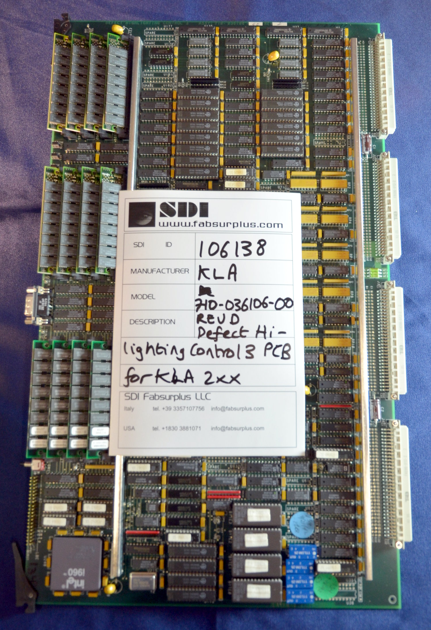 SDI fabsurplus.com is pleased to announce the availability of the following listed used KLA 710-036106-00 REV D Defect Highlighting Control 3 PCB for KLA 2xx reticle inspection system.