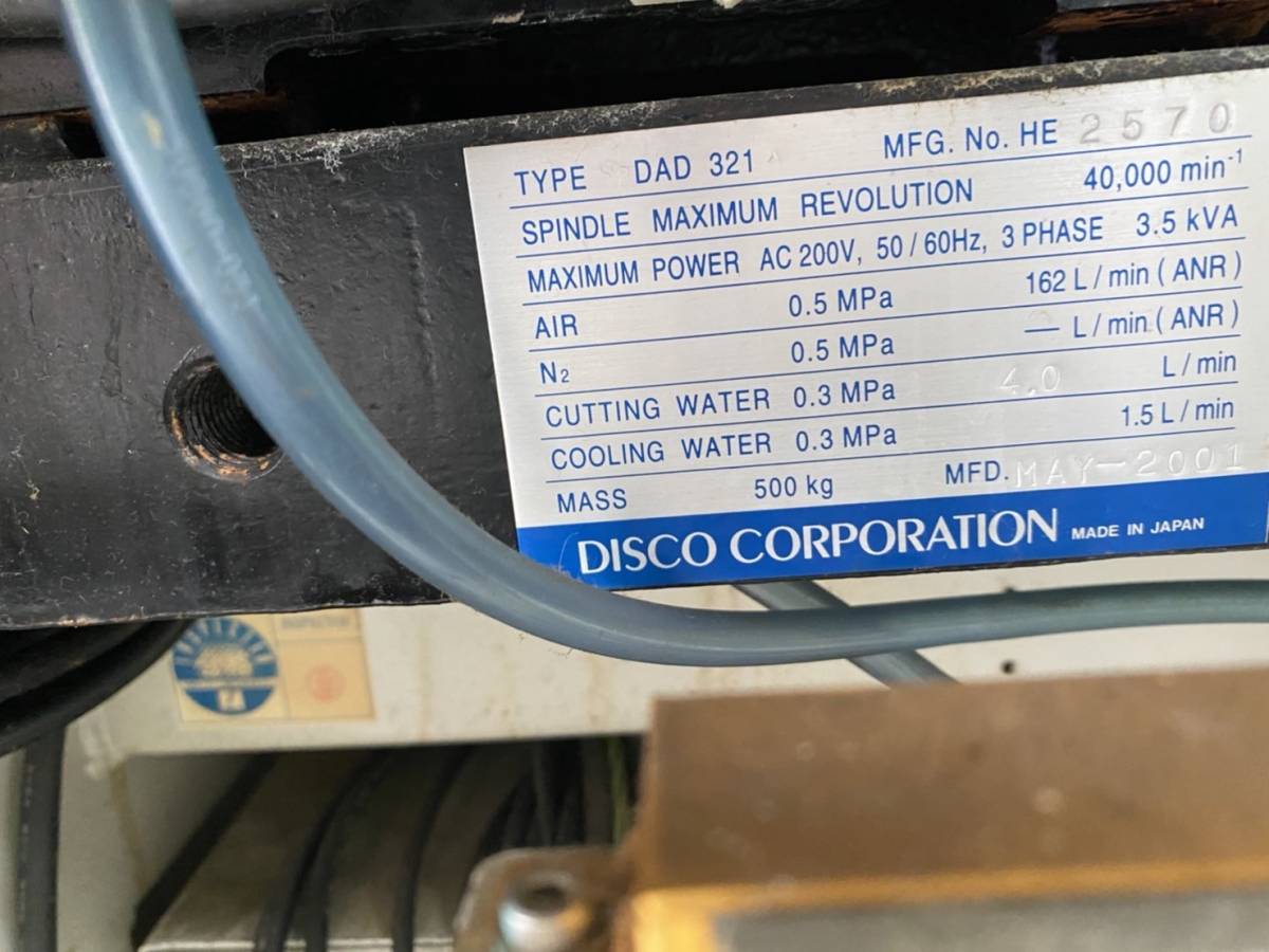 | Comments: | De-installed, warehoused. Can be inspected by appointment. Can either be sold in "as is" conditions, or sold refurbished, in working condition, with the possibility to see a power-on working demonstration. Please refer to the attached photos for the details about this tools' current condition. Here follow the standrad performance specifications for the Disco DAD 321 Dicing saw:- Cutting Section |
