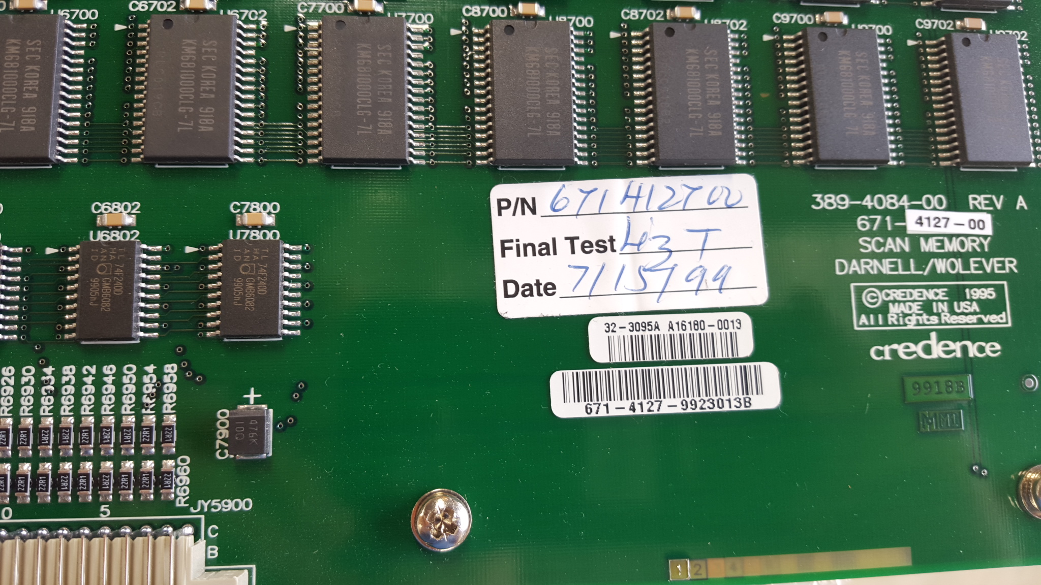 | Comments: | Scan Memory board, removed from working Credence Duo SX Tester |