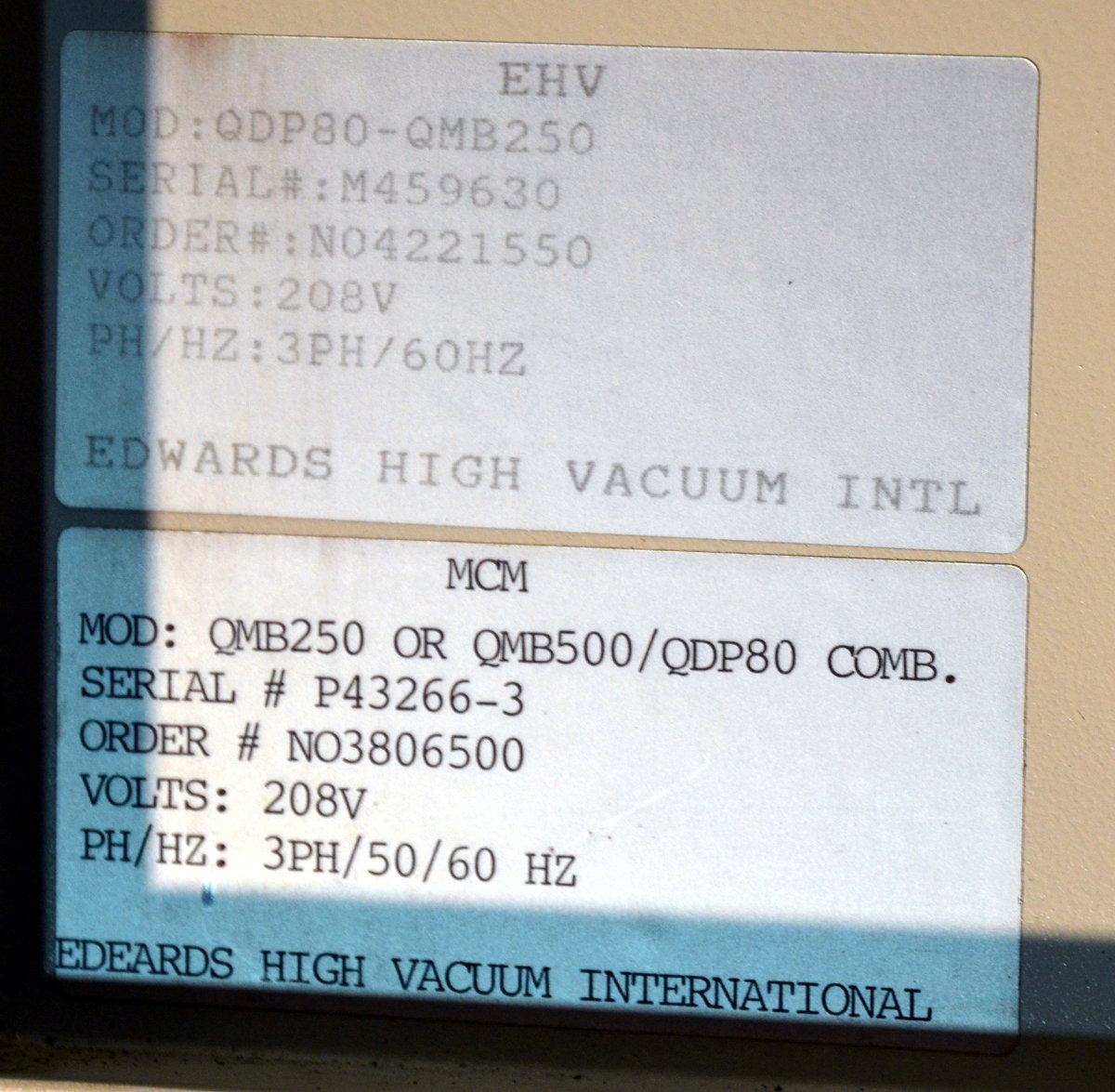 SDI fabsurplus.com is pleased to announce the availability of the following listed used Edwards QDP80 + QMB250F Dry Vacuum pump combo with power box.