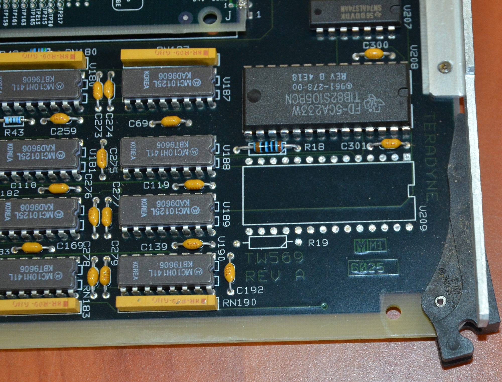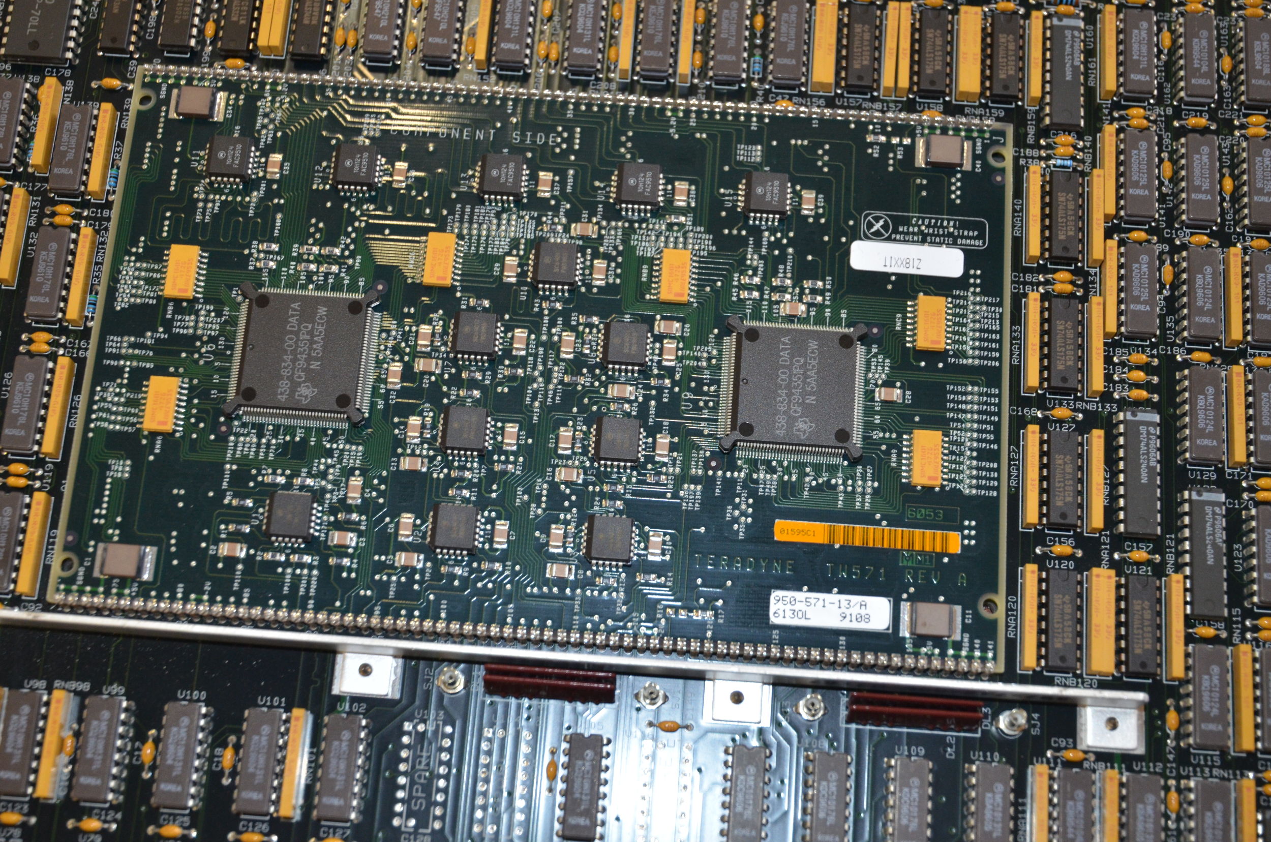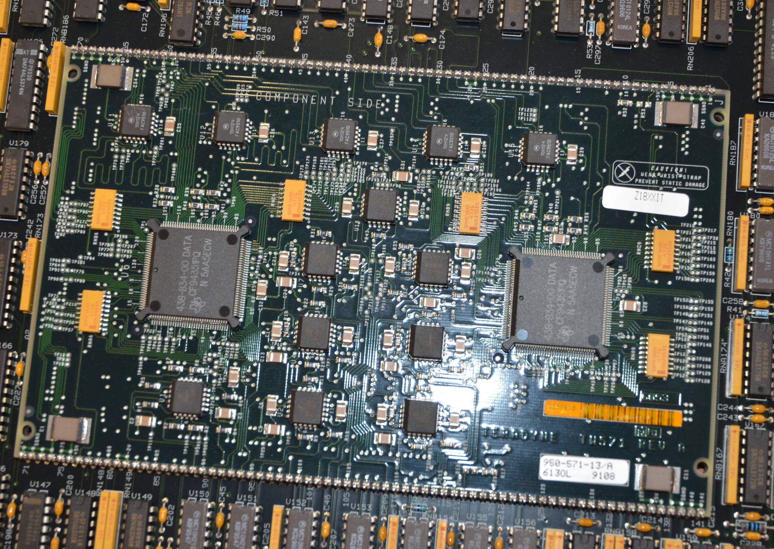| Comments: | PCB REMOVED FROM A WORKING J971 SP TESTER SYSTEM TERADYNE TW569 REV A MM1 6025 WITH QTY 2 OF TERADYNE 950-571-13 REV A 6130L 9108 Z18XXIT SEE PHOTOS FOR DETAILS |