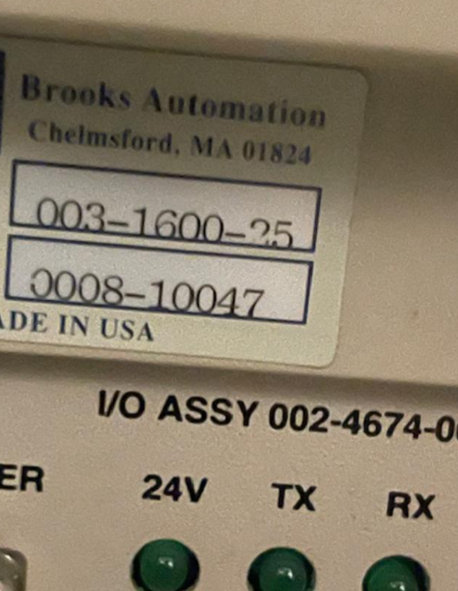 | Comments: | USED BROOKS MAGNATRAN ROBOT P/N 003-1600-25 I/O ASSEMBLY IS P/N 002-4674-0XX |