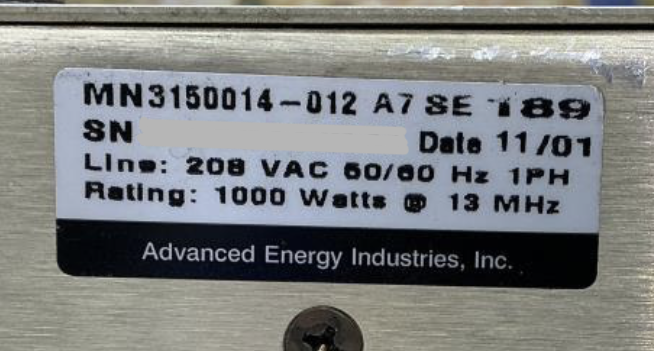 SDI fabsurplus.com is pleased to announce the availability of the following listed used AE RF10-S RF Generator.