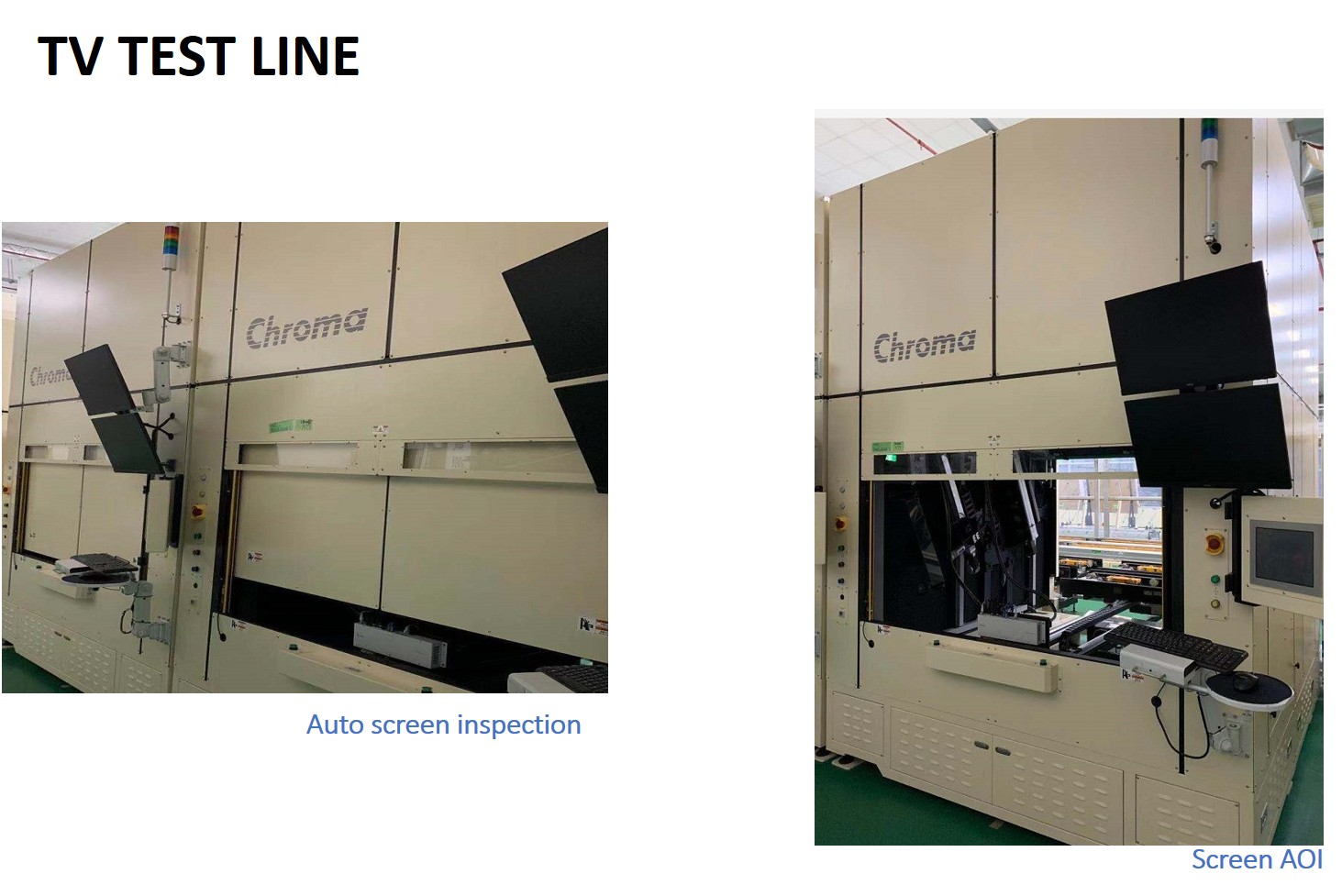 SDI fabsurplus.com is pleased to announce the availability of the following listed used Chroma TV assembly Line 50~75" TV assembly Line 50~75" (NEW, UNUSED).