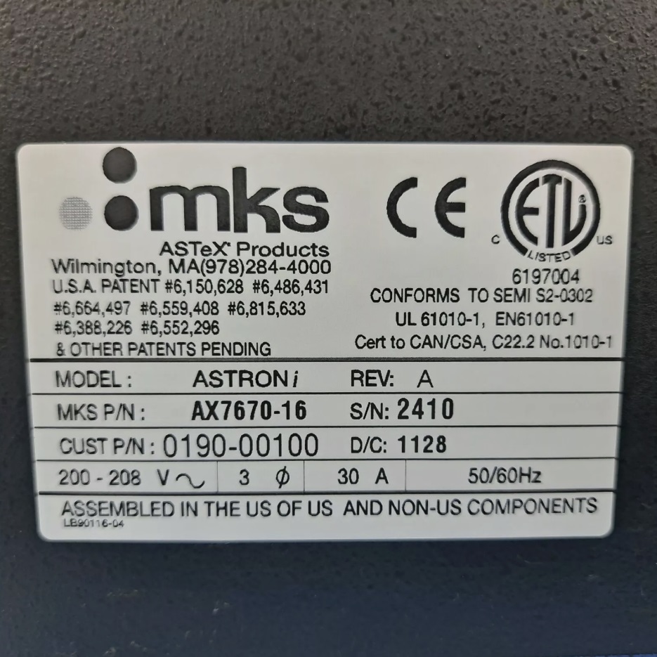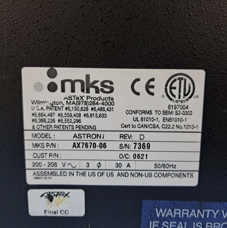 This MKS ASTeX ASTRON AX7670 Remote Plasma Cleaning Unit (RPS) is available for immediate sale.