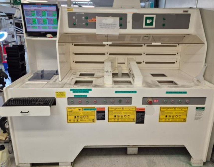 | Comments: | Wafer load size: 25 slots, 150 mm, notch Tank 1 NITRIC / HF Tank 2 DIW Tank 3 HF Tank 4 DIW Tank 5 HF Tank 6 DIW -Still installed and shut down in the fab |
