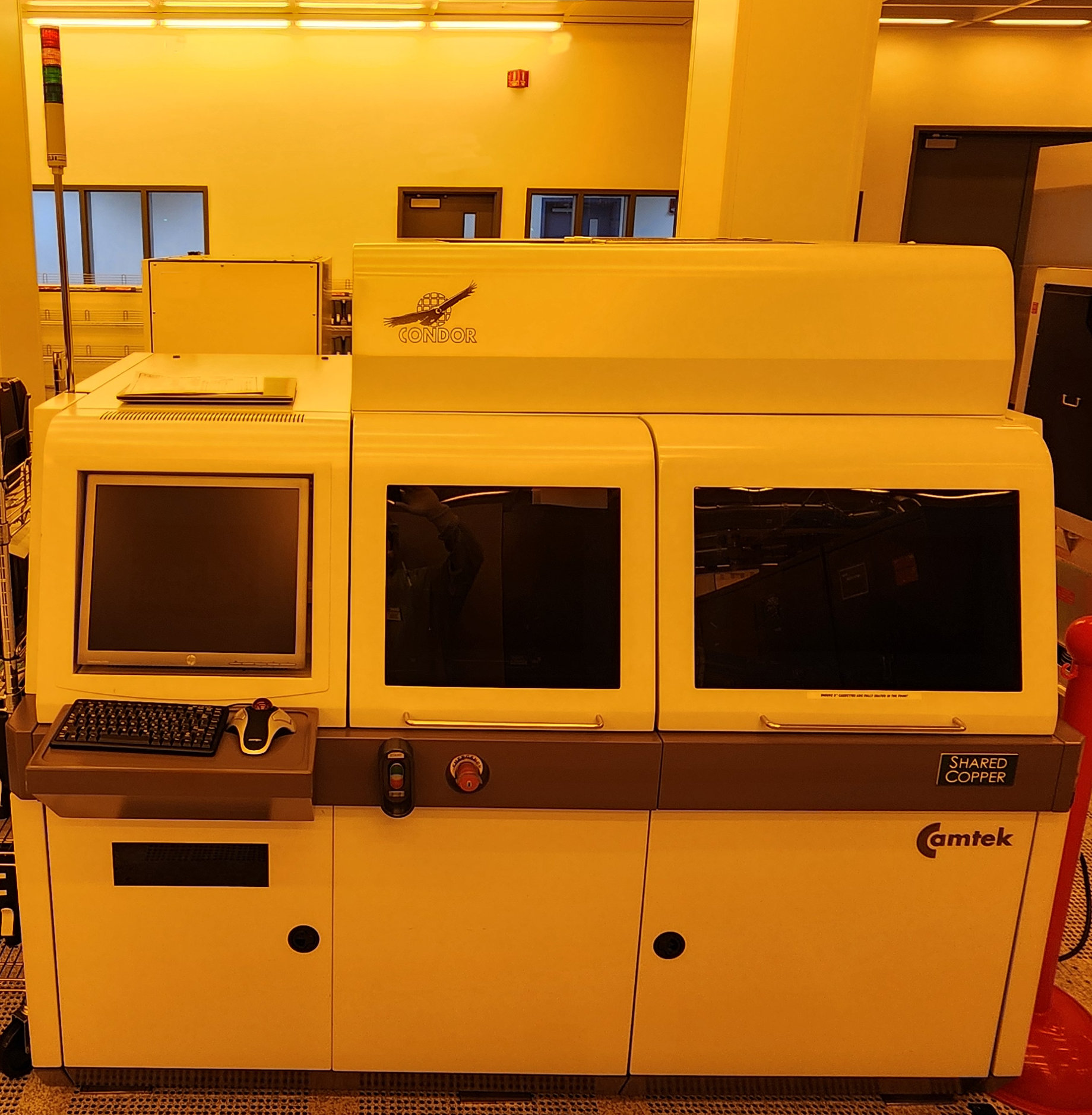 This Camtek Condor 302M Wafer inspection system for surface defects, 2D bump metrology, and 3D measurement is available for immediate sale.