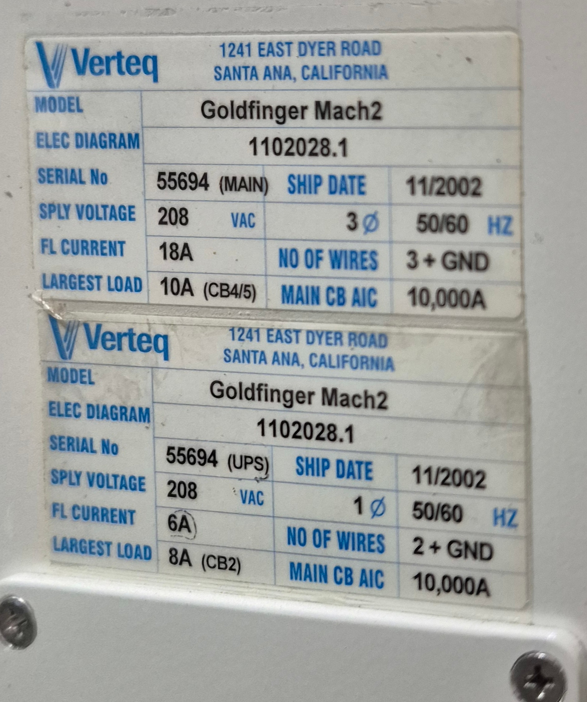 This Verteq Goldfinger Mach 2 Single wafer HF cleaning system is available for immediate sale.