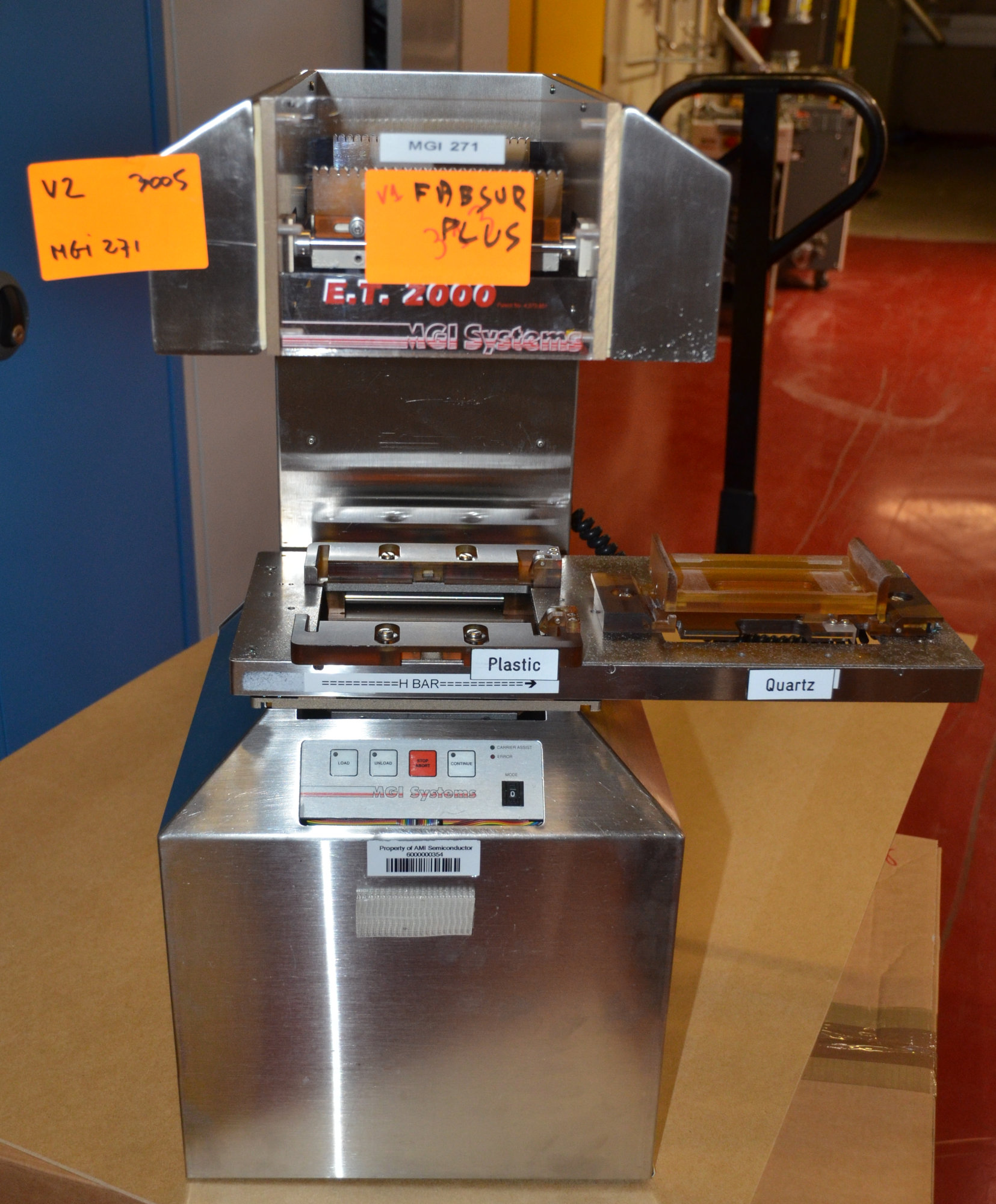 SDI fabsurplus.com is pleased to announce the availability of the following listed used MGI Electronics ET 2000 Plastic boat to quartz boat wafer transfer system.