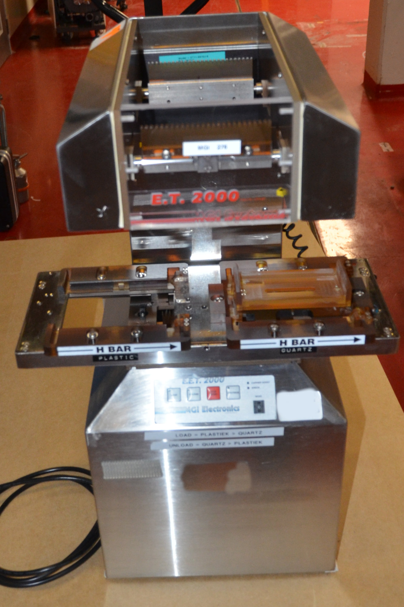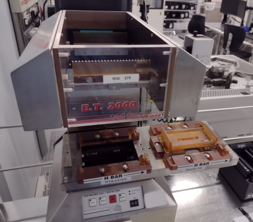 This MGI Electronics ET 2000 Plastic boat to quartz boat wafer transfer system is available for immediate sale.
