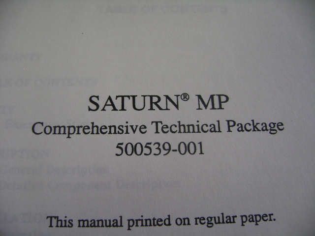 This FSI 500539-001 Saturn MP comprehensive technical package is available for immediate sale.