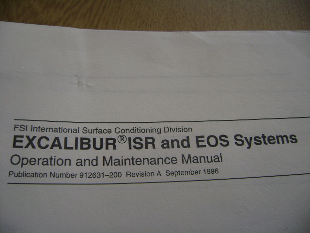 SDI fabsurplus.com is pleased to announce the availability of the following listed used FSI 912631 Excalibur ISR and EOS systems operations and maintenance manual.