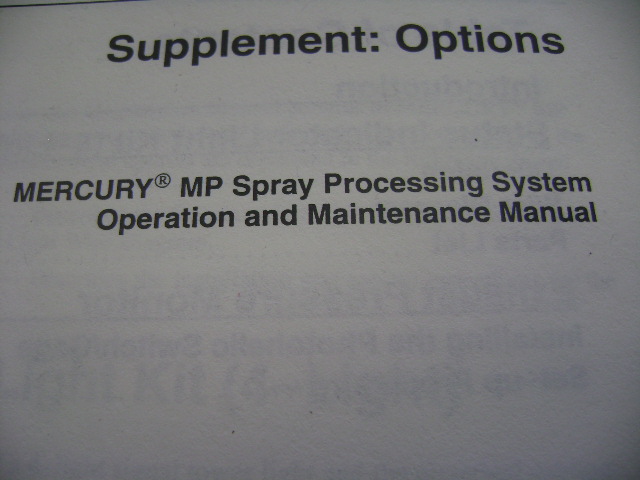 Please click on the "Get Quote" button at the end of the Mercury MP description, if you'd like to get a quotation, photos and specifications of this Spray Processing system Operation & Maintenance Manual, and your request for this equipment will be forwarded to our SDI sales representatives automatically.