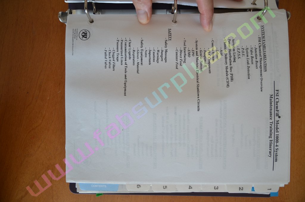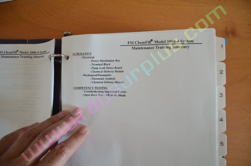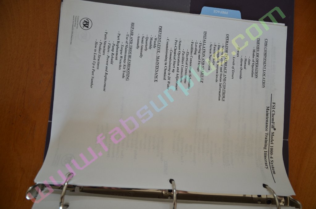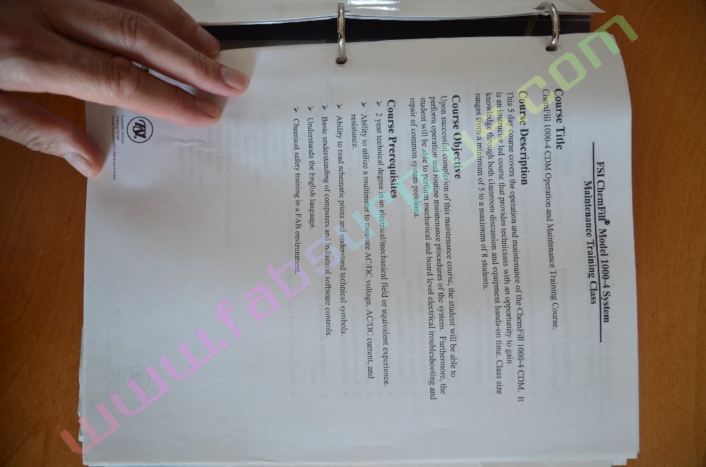 SDI fabsurplus.com is pleased to announce the availability of the following listed used FSI Chemfill systems - Manual Model 1000-4 PLC CDM Supplementary Training Package .