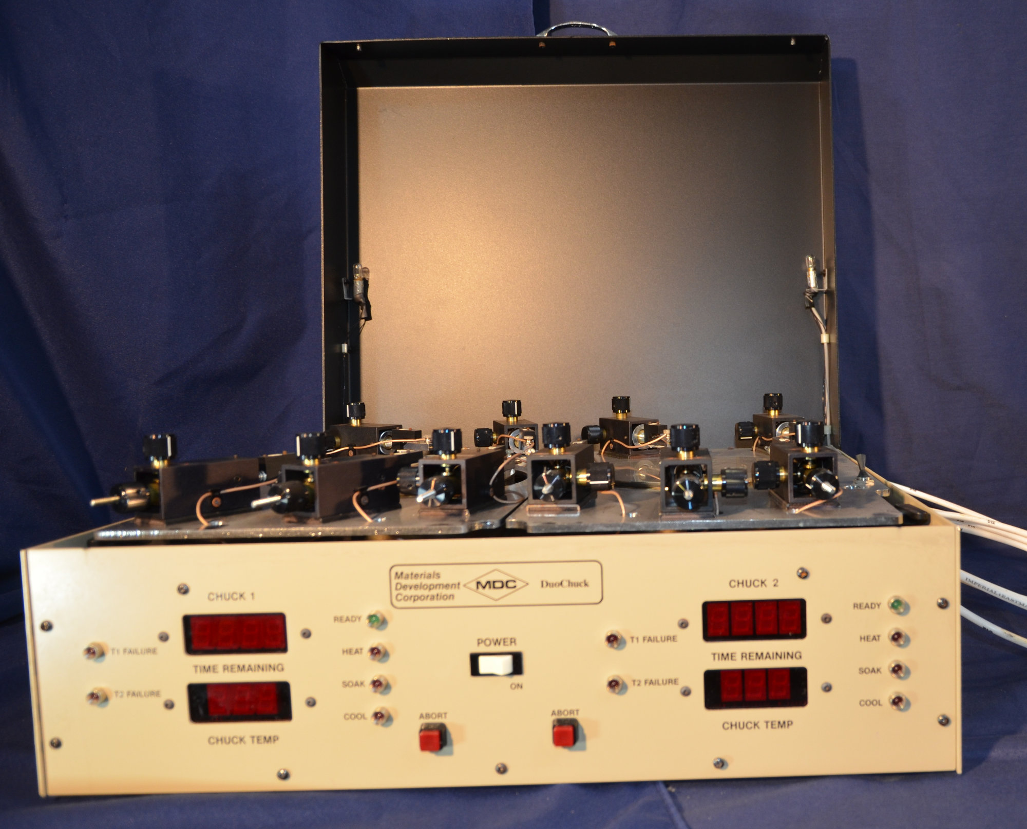 Please click on the "Get Quote" button at the end of the DUO CHUCK 8512-6 description, if you'd like to get a quotation, photos and specifications of this Dual Integrated Hot Chuck CV measurement system in a dark box, and your request for this equipment will be forwarded to our SDI sales representatives automatically.