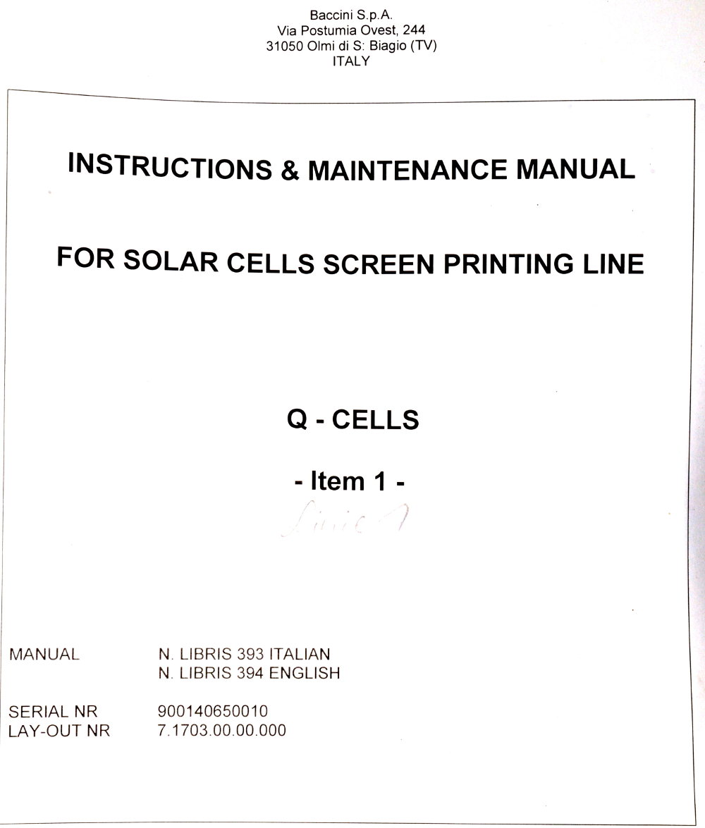 | Comments: | Integrated printers and dryers for the production of 156 mm square solar cells. |