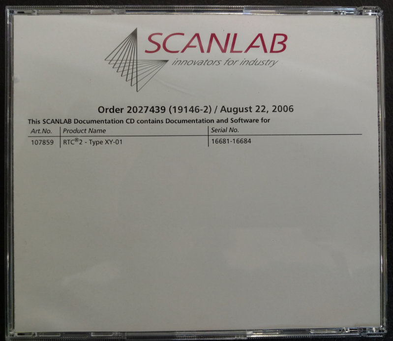 | Comments: | PC interface board and software disk for galvanometer-based beam positioning system. |