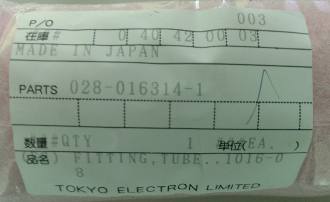 SDI fabsurplus.com is pleased to announce the availability of the following listed used TEL Tokyo Electron 028-016314-1 FITTING TUBE...1016-0 8.