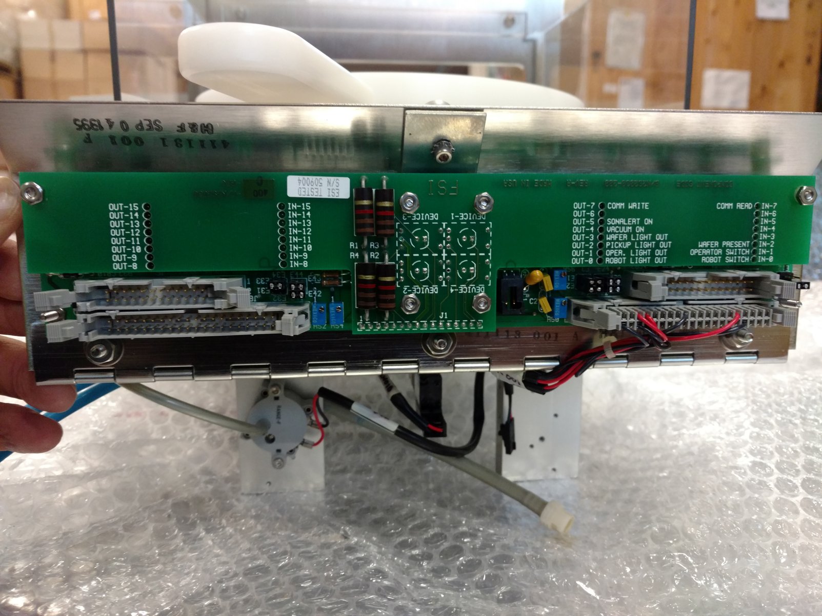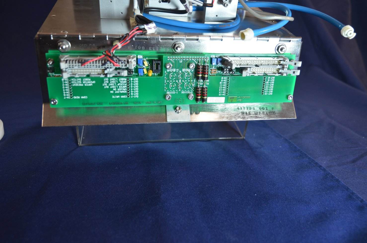 | Comments: | see attached photos. For FSI Polaris track system. Includes the following part numbers: 411131-001-F PCB: 400-A/N292030 C/REV 410827-00 /C 0795 JMI 410828-00 /B 0795 JMI 28 CM X 28 CM X 31 CM (H) WEIGHT 12.5 KG
