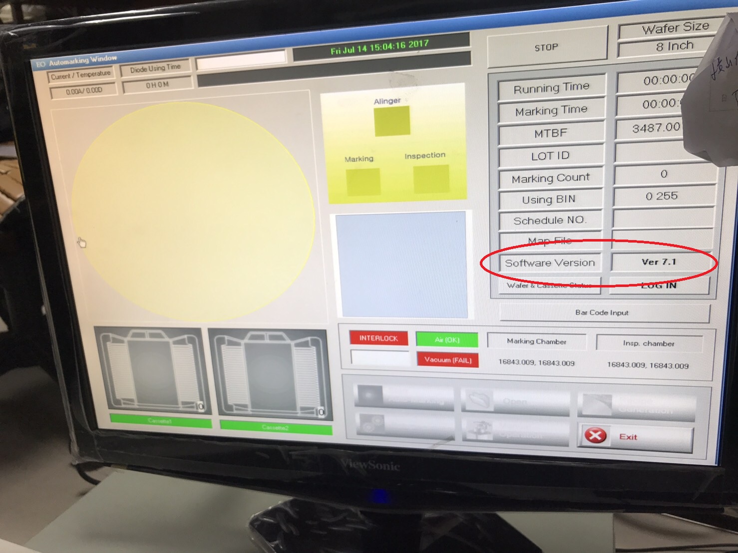 | Comments: | Deinstalled, warehoused. Can be inspected by appointment. See attached photos for details. These photos were taken when the tool was being move out from the facility where it was originally operating. Installed Software version: 7.1 |