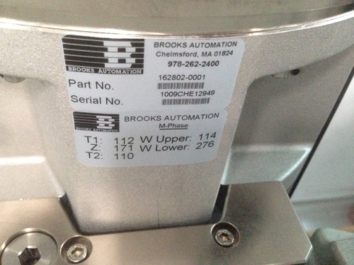 | Comments: | Deinstalled, warehoused. Can be inspected by appointment. This is the EFEM module from a Brooks Caliper Mosaic system: load ports not included The robot type is a Brooks Razor, part number 162802-0001 T1: 112 W Upper: 114 Z: 171 W Lower: 276 T2: 110 |